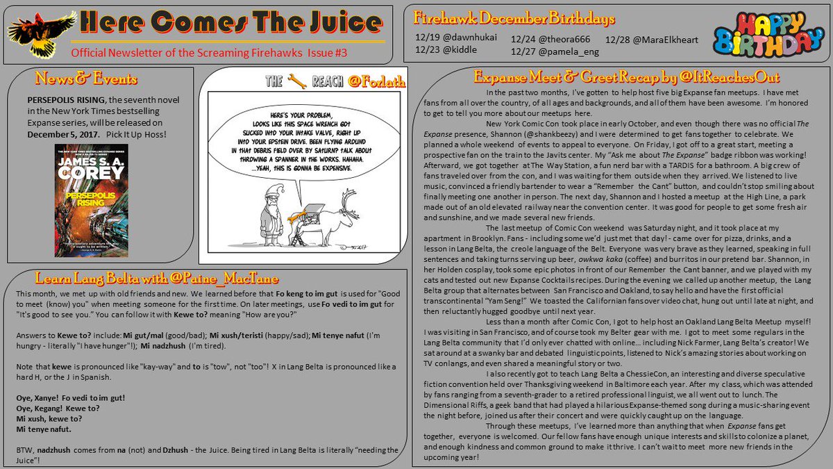 #ScreamingFirehawks Let's ring in the New Year with a New Issue of#HereComesTheJuice Fresh off the presses here is your January Issue! Enjoy the ride!#TheExpanse
