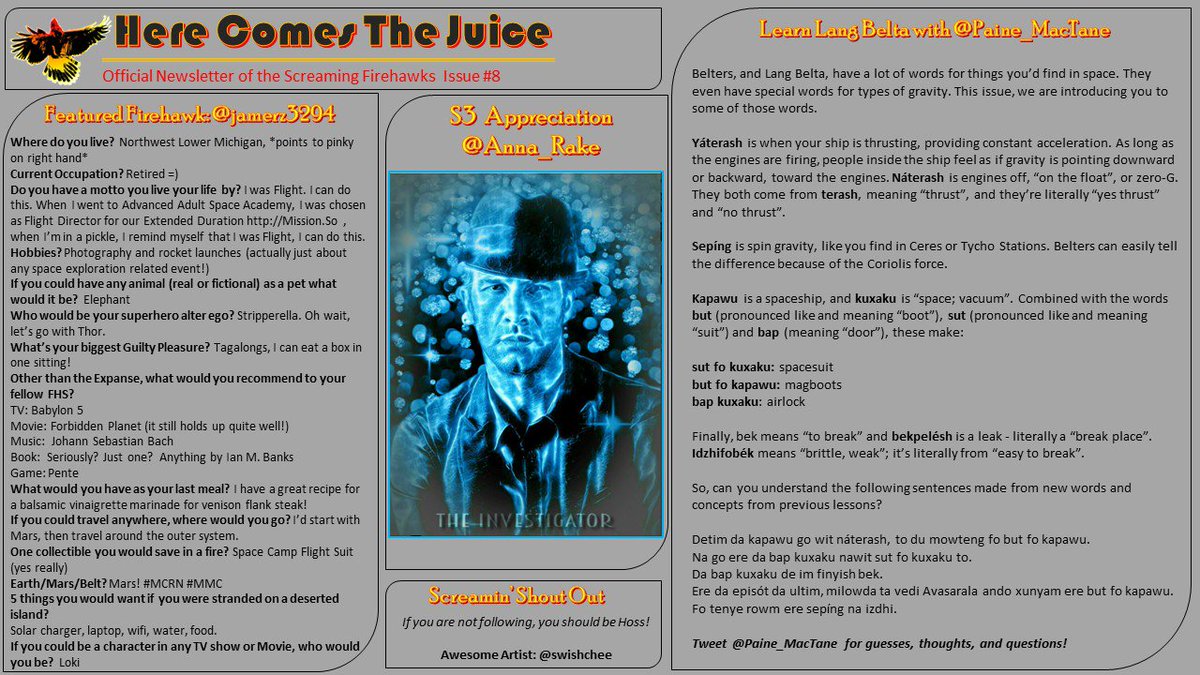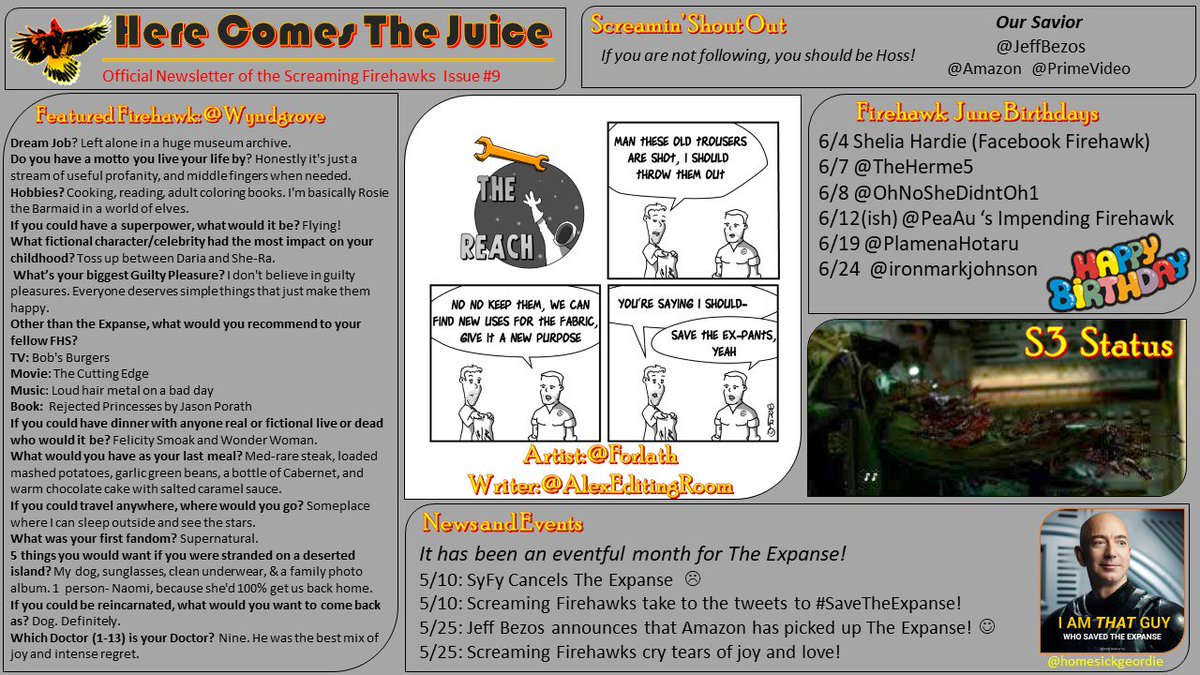 #ScreamingFirehawks! Are you buckled up and ready for the next issue of#HereComesTheJuice? Strap in...read on...#TheExpanse