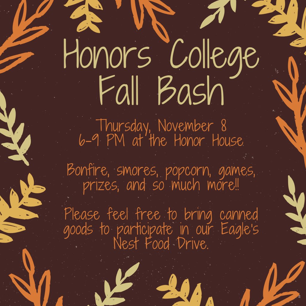 Fall Bash is almost here! Join us tonight from 6-9pm at the Honor House for some fall festival fun! The rain will stop this afternoon, and the party is still on! We’ll have games, delicious (and free) food, a campfire with s’mores, and great prizes that you can win!pic.twitter.com/eBVi6JXkp6