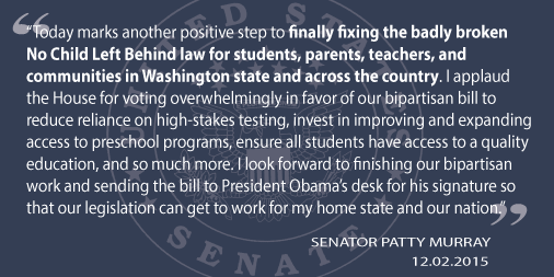 Sen. Murray’s statement on the House passage of the Every Student Succeeds Act to #FixNCLB http://1.usa.gov/1Ro1sHV pic.twitter.com/bOaG6eK95A