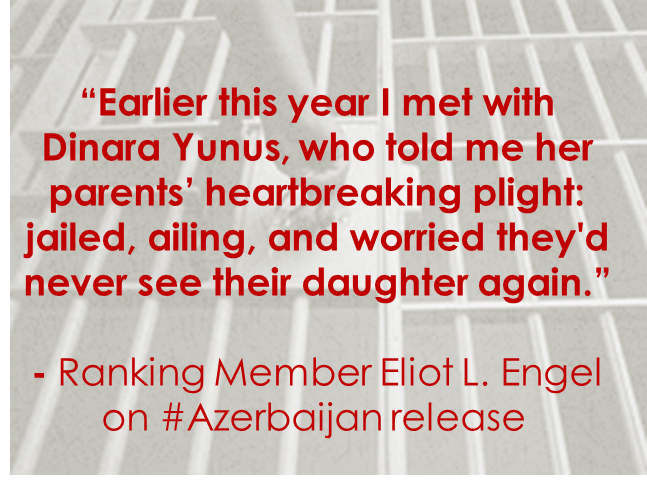 RM @RepEliotEngel Welcomes #Azerbaijan's Release of #HumanRights Activists http://1.usa.gov/1NlKBWo pic.twitter.com/Po9db0O3js