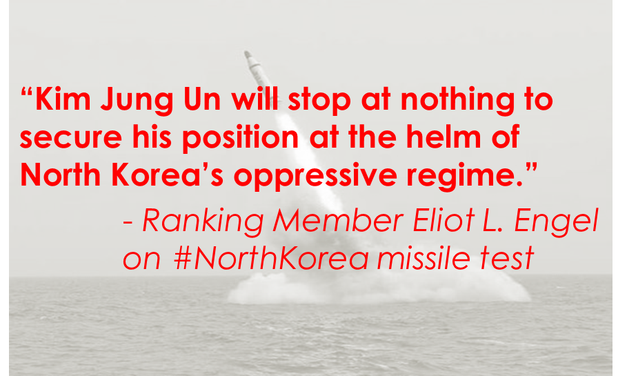 RM @RepEliotEngel Statement on #NorthKorea Missile Test http://1.usa.gov/1Tb3oQY pic.twitter.com/PunPsUV95j