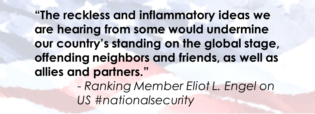 RM @RepEliotEngel: Reckless foreign-policy plans endanger American security http://1.usa.gov/21fDXnl pic.twitter.com/q56Mowbdgo