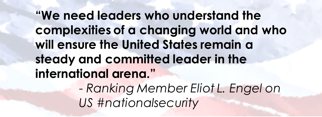 RM @RepEliotEngel: Reckless foreign-policy plans endanger American security http://1.usa.gov/21fDXnl pic.twitter.com/XjTAL24Bzk