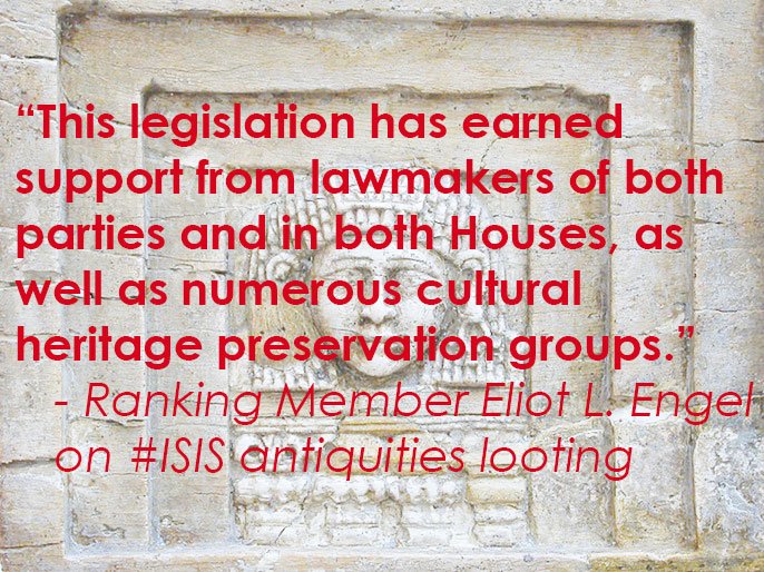 .@POTUS signs RM @RepEliotEngel’s #HR1493 to curb #ISIS antiquities looting into law http://1.usa.gov/1QWGdbr pic.twitter.com/yr8lPGjkby