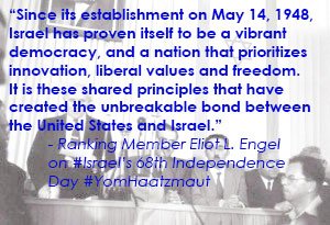 RM @RepEliotEngel Commemorates 68 Years of Israel’s Independence http://1.usa.gov/1sh8OV0 #YomHaatzmautpic.twitter.com/pD3CHtwsF2