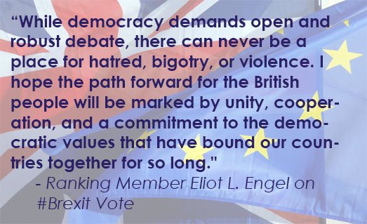 RM @RepEliotEngel Statement on the #BrexitVote http://1.usa.gov/28RRknO #EURefResults #EUref #EUreferendumpic.twitter.com/9JKnasngjU
