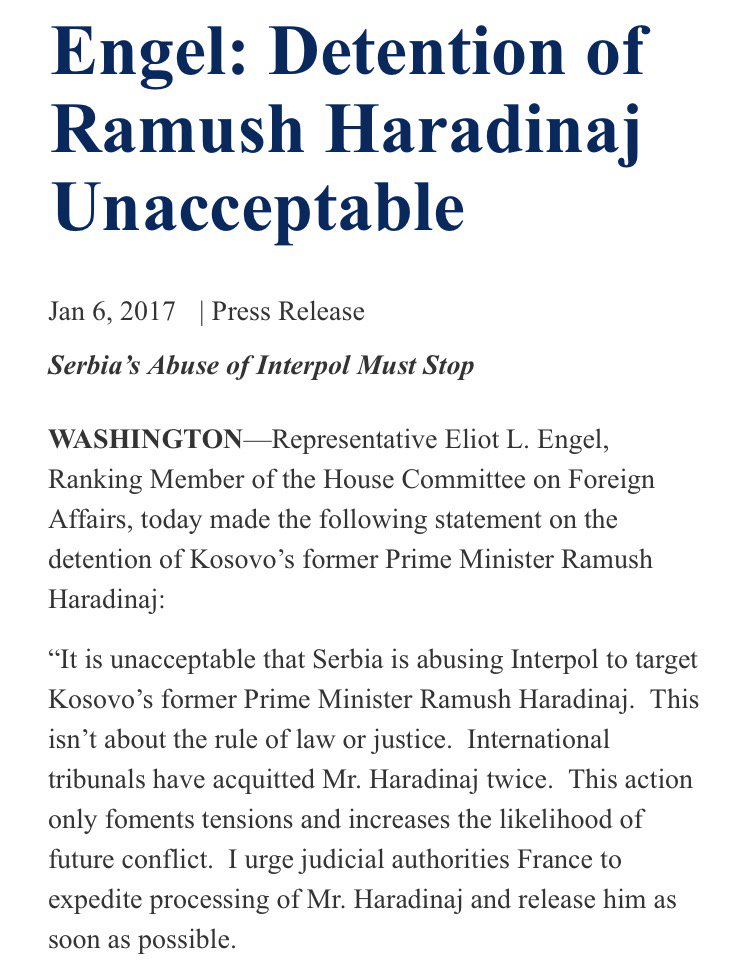 RM @RepEliotEngel: Detention of Ramush Haradinaj Unacceptable https://democrats-foreignaffairs.house.gov/news/press-releases/engel-detention-ramush-haradinaj-unacceptable …pic.twitter.com/NJXHj7h0ua