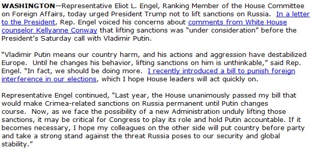 RM @RepEliotEngel to @POTUS: Lifting #Russia Sanctions a Mistake https://democrats-foreignaffairs.house.gov/news/press-releases/engel-trump-lifting-russia-sanctions-mistake …pic.twitter.com/eHOWvWJLju