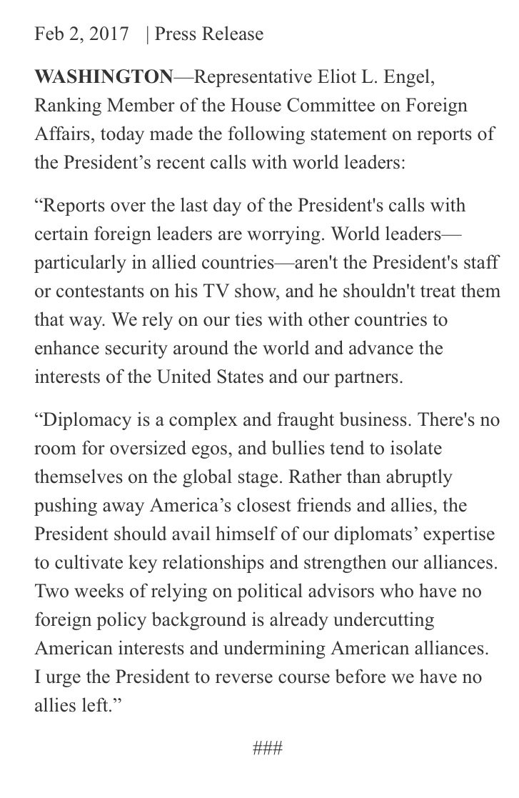 RM @RepEliotEngel statement on @POTUS calls with foreign leaders: https://democrats-foreignaffairs.house.gov/news/press-releases/engel-statement-presidents-calls-foreign-leaders …pic.twitter.com/LnJBtfS61k