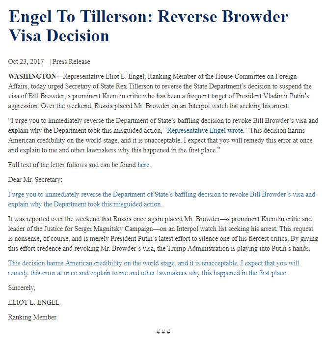 RM @RepEliotEngel to @StateDept Sec’y #Tillerson: Reverse @Billbrowder Visa Decision https://democrats-foreignaffairs.house.gov/news/press-releases/engel-tillerson-reverse-browder-visa-decision …pic.twitter.com/fWkRi7fHlt