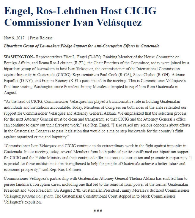 Traducción libre: Excelente noticia para quienes luchan contra la corrupción. El apoyo del Congreso de los Estados Unidos es necesario.