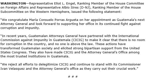 RM @RepEliotEngel & @RepSires: “We reject all efforts to delegitimize @CICIGgt.”