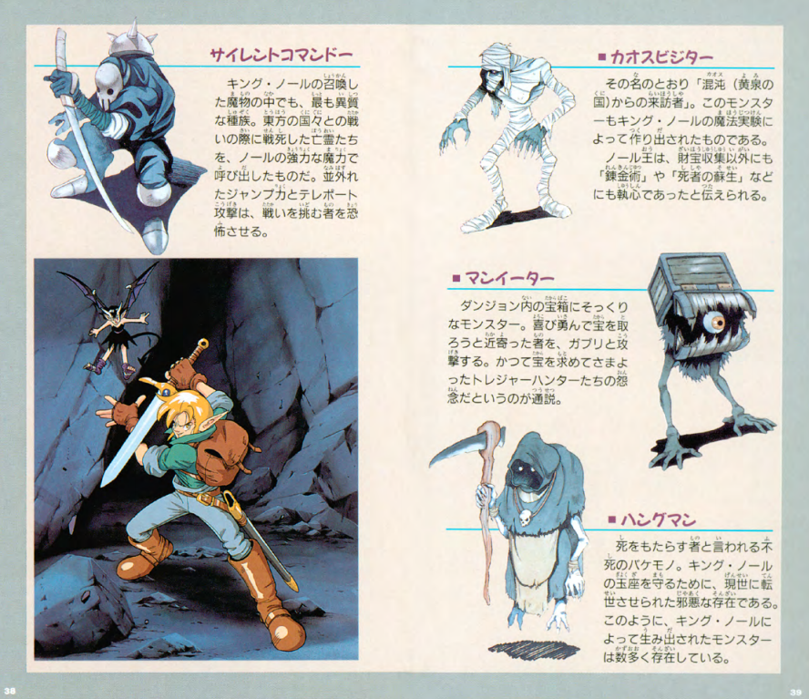 The JP version of Landstalker had some cool enemy names too: Silent Commando, Chaos Visitor, Maneater, and Hangman. These got changed to Ninja, Mummy, Chest Mimic and Reaper. Maybe the author of the US manual didn't have access to the translated names...?https://twitter.com/yami_translator/status/1224691065245974528 …