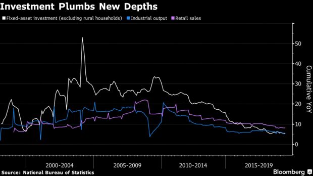 China’s economy slowed further in October, with investment growth falling to a record low https://bloom.bg/2qTSP3K pic.twitter.com/dMp3fXBGe6