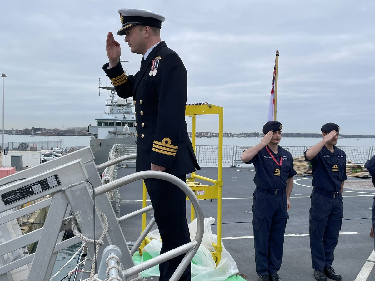 On completion of handing over Command this morning, Cdr Hugh Harris RN departs on assignment. The Executive Officer Lt Cdr Rob Moore RN now has Command until the new CO joins in the New Year. All the very best for the future Sir.pic.twitter.com/ruVo6BjoeY