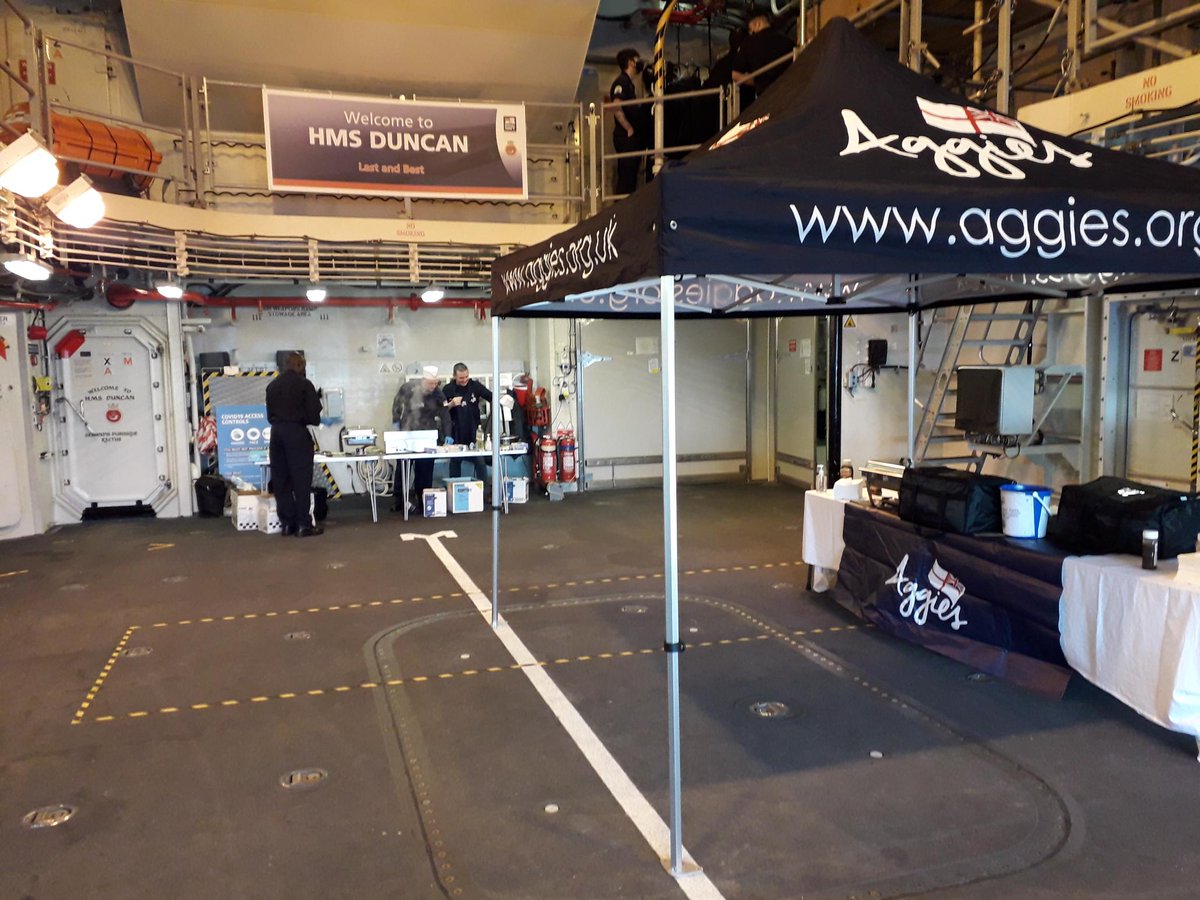 Aggie's Pastoral Worker Paul Jackson and Chaplain Joshua were onboard HMS Duncan cooking up Aggie's butties for this morning's standeasy.pic.twitter.com/LxHFLi5F0E