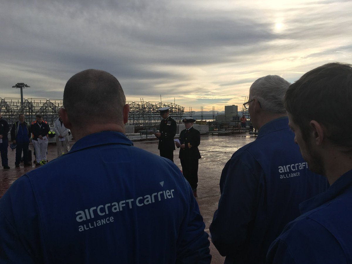 Today at 1100, both @QEClassCarriers held their first Acts of Remembrance on board @HMSQnlz and @HMSPWLS #lestweforgetpic.twitter.com/Xz0isjshaE