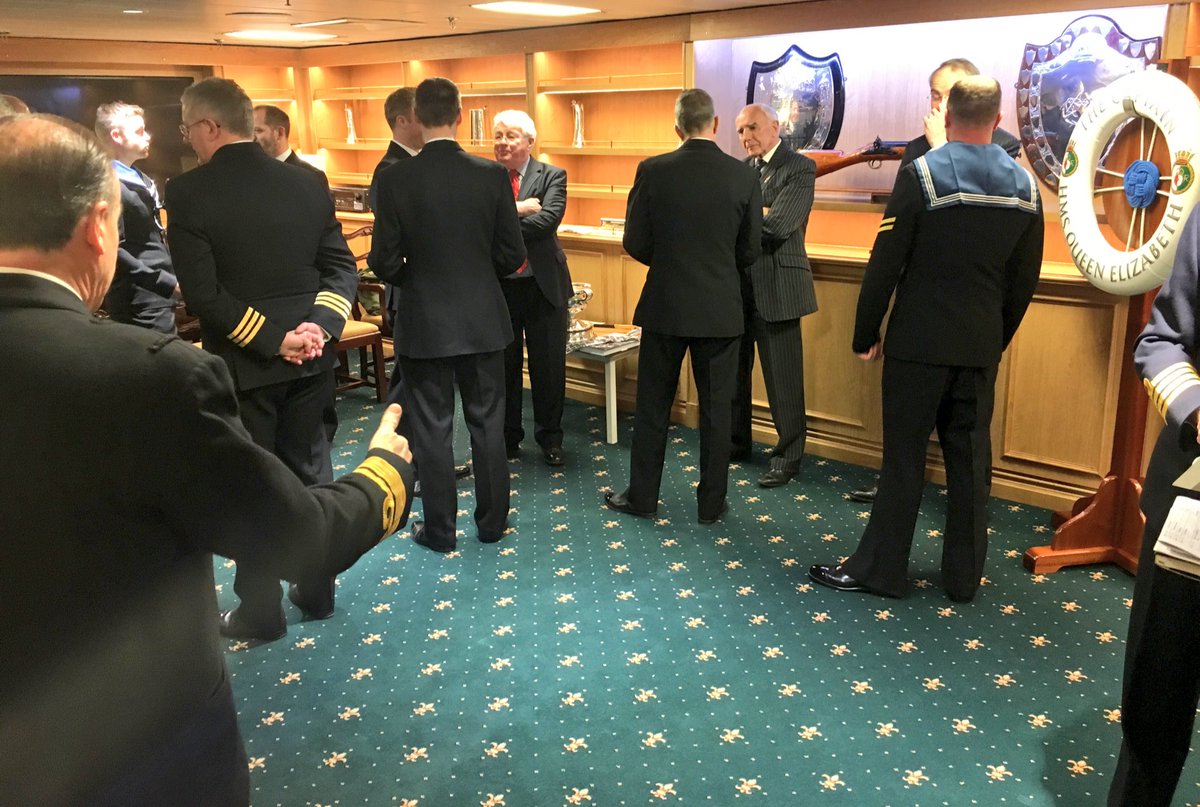 A gathering in the Flag Dining Room onboard for the presentation of awards to Fleet Air Arm personnel by Rear Admiral Blount #FlyNavypic.twitter.com/a1TLuBZ9Yd