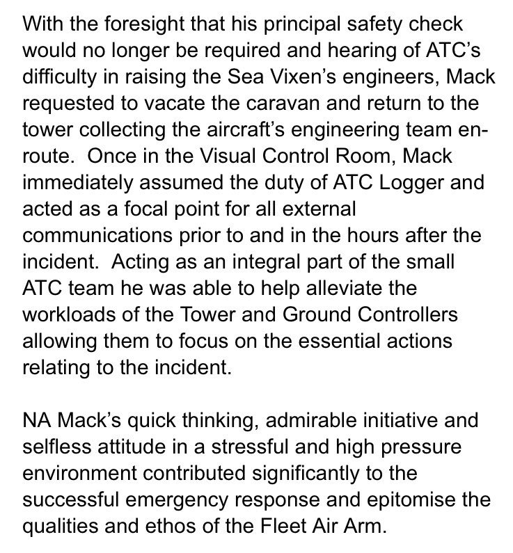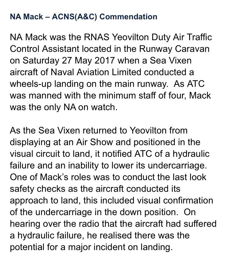 Naval Airman Mack is presented an ACNS Commendation by R.Adm @KeithBlountFAA for his actions during the wheels up landing of @NavyWingsUK Sea Vixen at @RNASYeovilton. #FlyNavypic.twitter.com/UezK199c7o