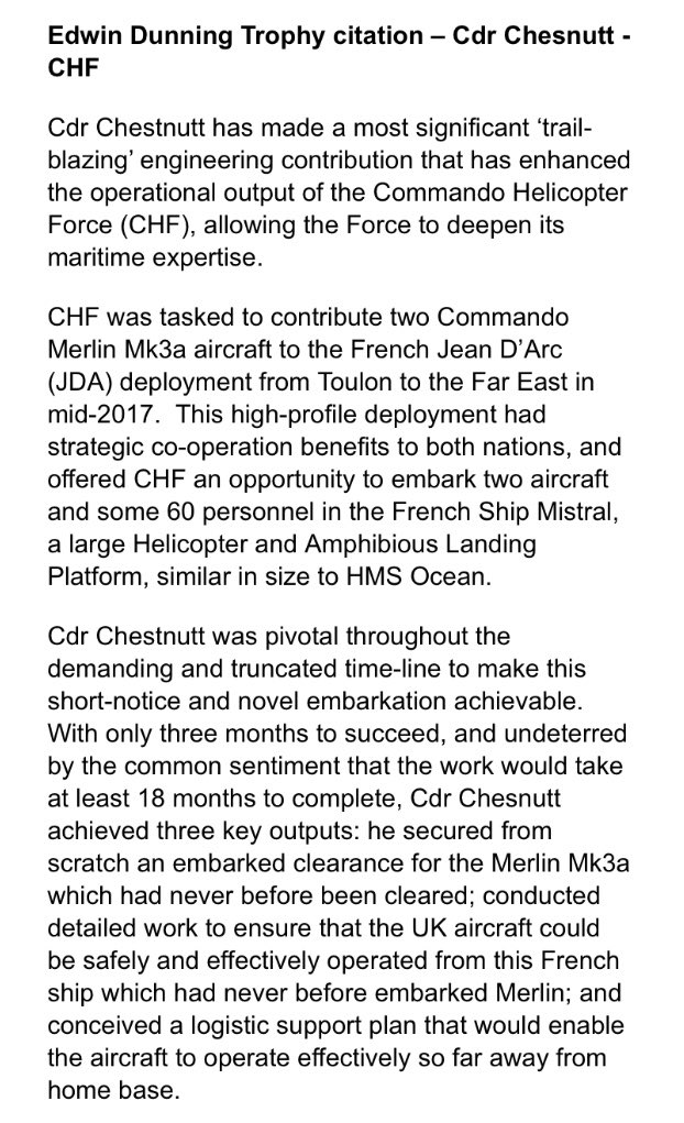 Cdr Chestnutt is presented The Edwin Dunning Trophy for the short notice deployment of CHF Merlins onboard FS Mistral. #FlyNavypic.twitter.com/ap1VsLJpWP