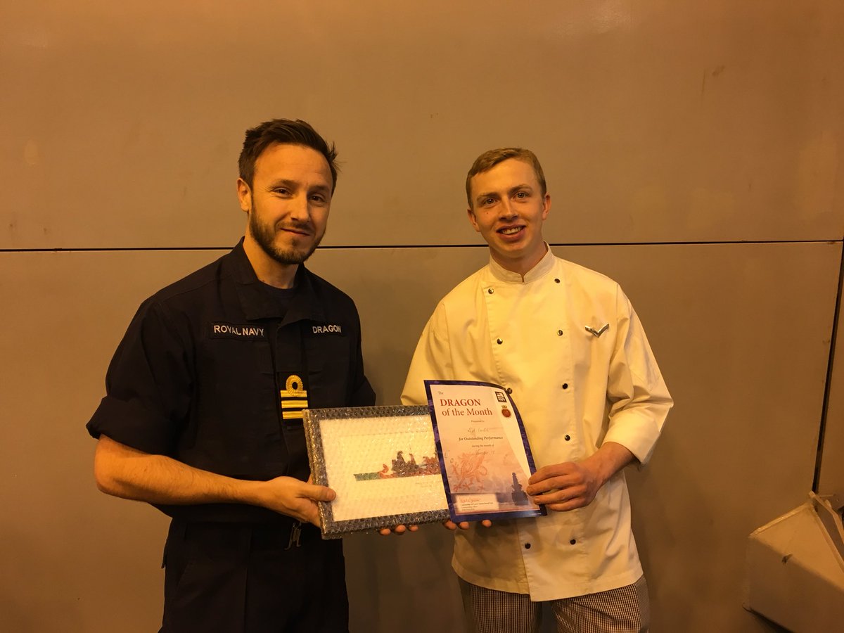 The sailor of the month for Dec 2017 is...LCpl Canlin from @22SigRegt onboard as part of @BritishArmy exchange with @RoyalNavy! A great addition to our Galley and turned his hand to many new roles during his time with the dark blue!pic.twitter.com/GJpB4VUz0M