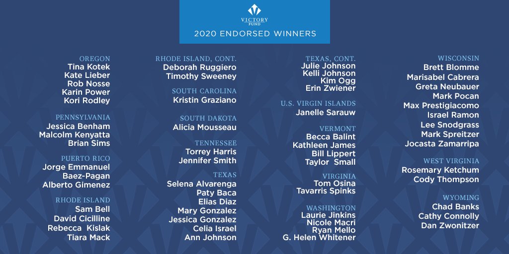 Congratulations to each of the 222 LGBTQ Victory Fund endorsed candidates who were elected to public office in 2020! Your voice matters now more than ever.pic.twitter.com/bqYLGJK6RO