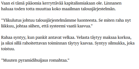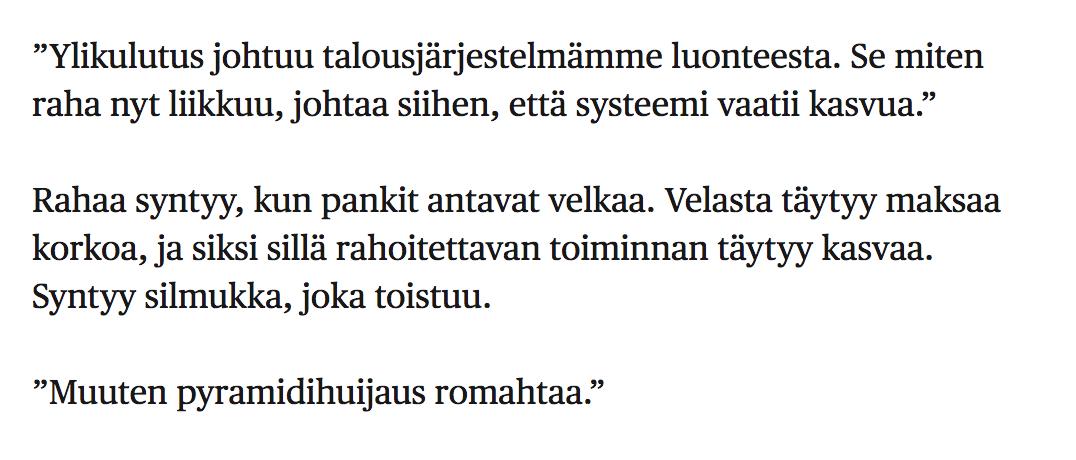 𝟒 𝐩𝐞𝐫𝐮𝐬𝐚𝐬𝐢𝐚𝐚 𝐫𝐚𝐡𝐚𝐬𝐭𝐚 𝐣𝐚 𝐤𝐨𝐫𝐨𝐬𝐭𝐚: 1. Koron syvin olemus ei liity rahaan. 2. Yhden säästäminen ei edellytä toisen velkaantumista. 3. Pankkien yhteiskunnallinen tehtävä ei ole siirrellä tai luoda rahaa. 4. Koron maksaminen ei edellytä kasvua.