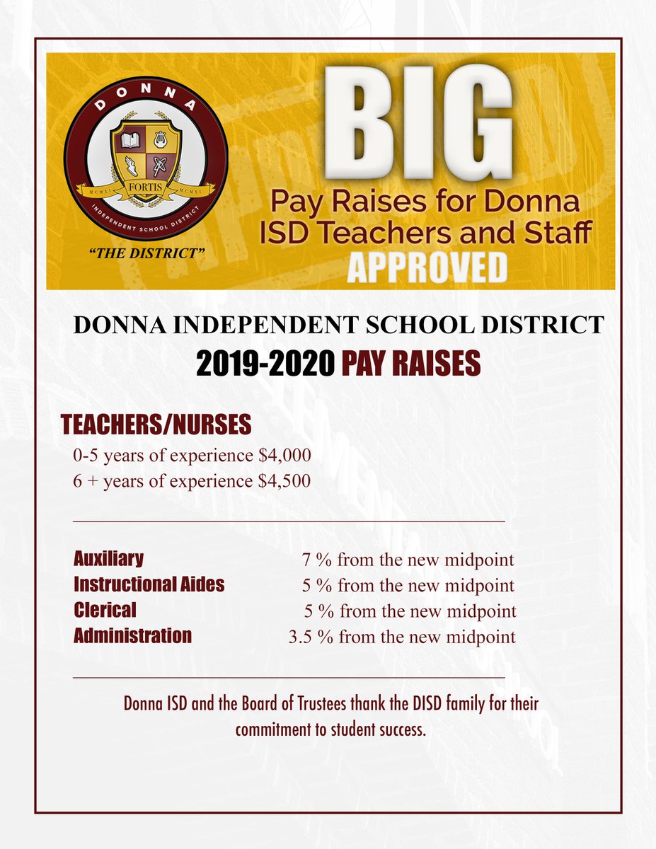 We are thrilled to offer these well deserved pay raises to our teachers and staff. Thank you to our board members for their relentless support! #THEDISTRICThttps://twitter.com/Donna_ISD/status/1161438394691416064 …