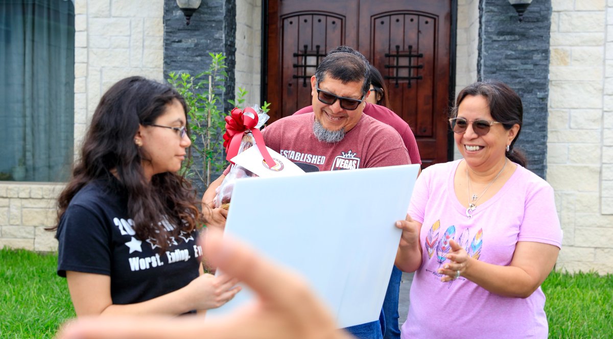 DHS Valedictorian Aleea Campos and Salutatorian Brian De Jesus Duran received a nice surprise when Principal Dr. Castillo, Superintendent Dr. Azaiez and Board President Eva Watts stopped by their homes to deliver a yard sign recognizing their success and gift basket. A big KUDOS! pic.twitter.com/qKFKuQCX63
