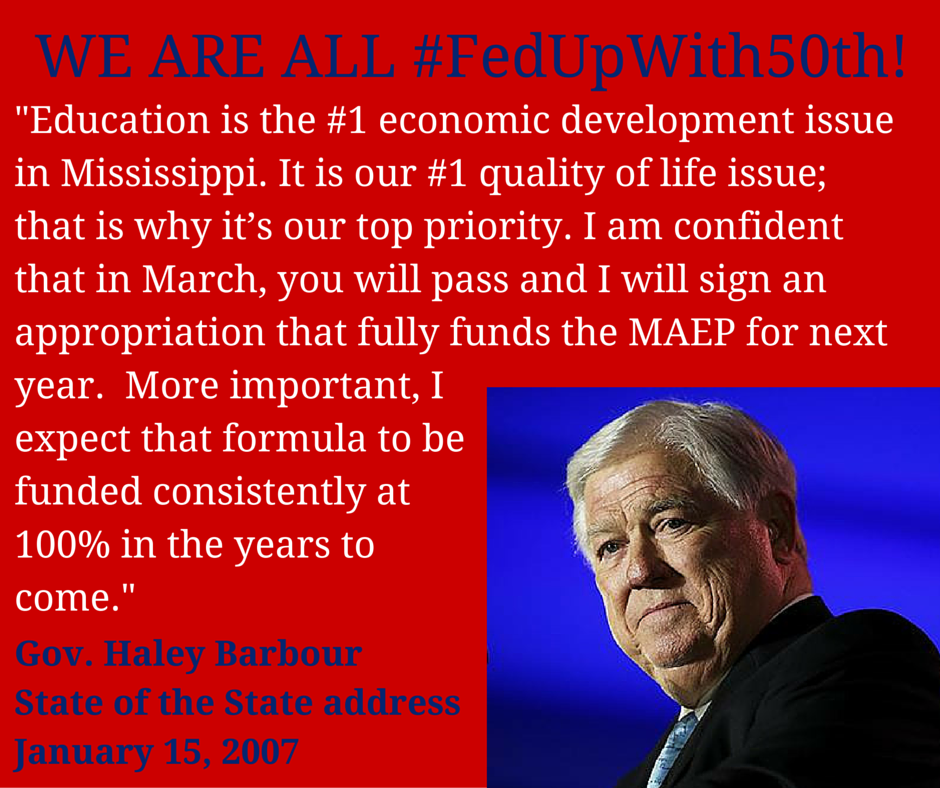 @HaleyBarbour Is it then the stated position of the Repub Party to continue to underfund our schools?