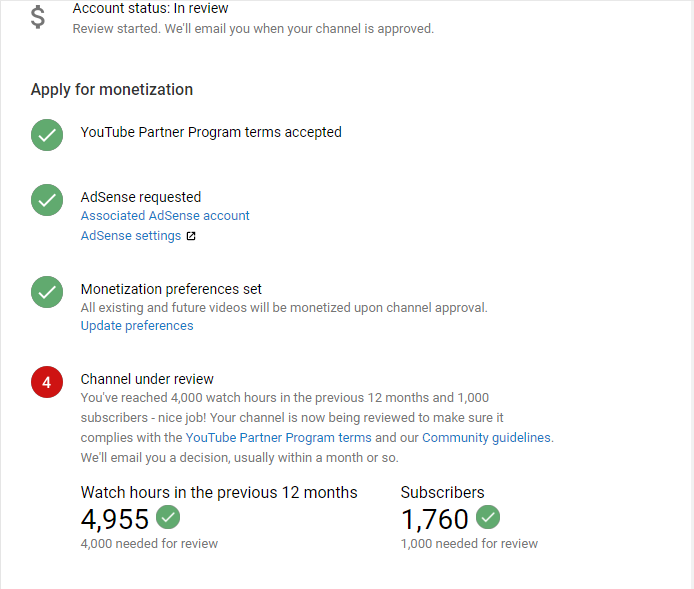 I have already reached 4000 Watch hours and also completed my 1000 Subscribers. My request you to please review my channel and Please approved my YouTube channel as soon as possible.