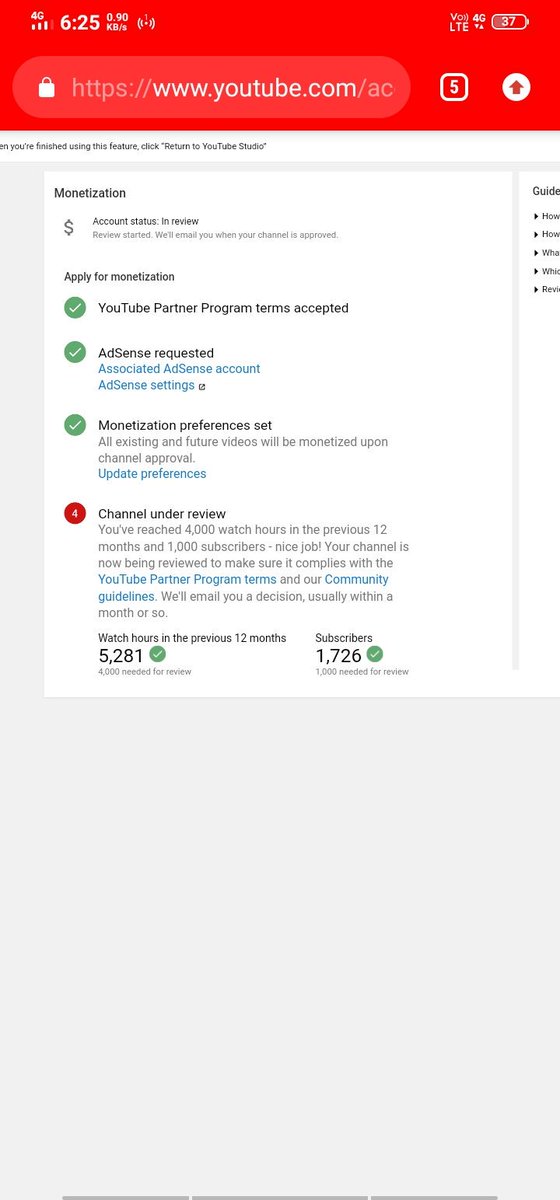 My channel is completed 1k Subscribers & 4k hours watch time in the last 365 days but my channel is still under review. Sir please help me please enable monetization
