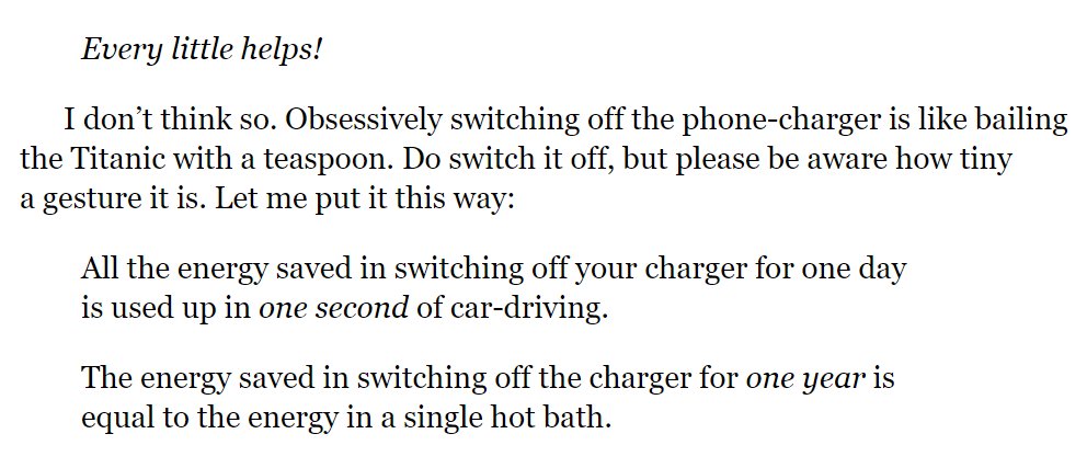 Passage from David Mackay's "Sustainable Energy - Without the Hot Air." Banning straws too is like bailing the Titanic with a teaspoon.pic.twitter.com/7wDq6zdW6B