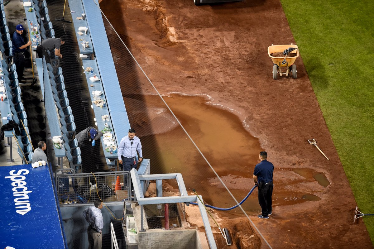 win stinks as a broken sewer line ends their game against the Angels in the 5th inning