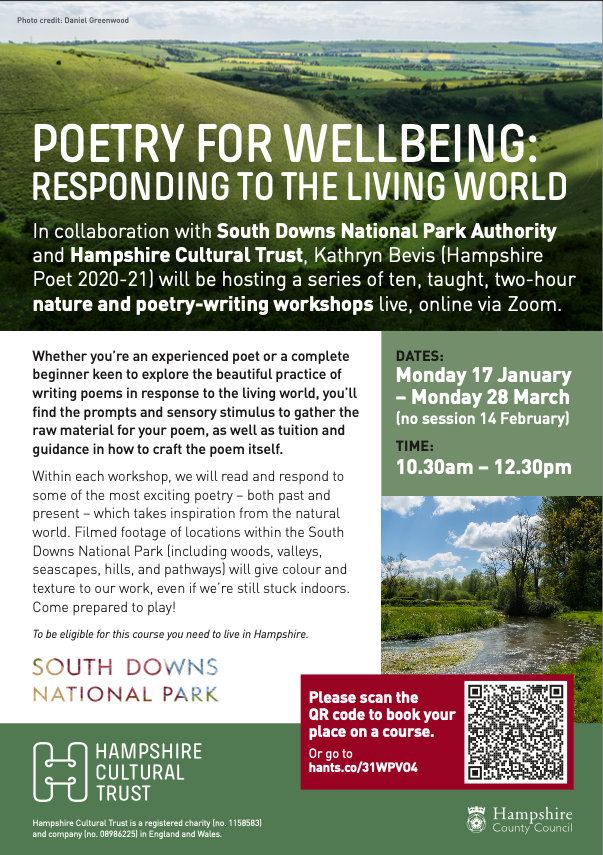 Delighted to launch our next, FREE Poetry for Wellbeing course for any adult in Hampshire who feels they might benefit. This is a beginner friendly, supportive group and we're particularly encouraging those who've never done a writing course with us before. R/Ts appreciated.pic.twitter.com/ZA4vZMVd2o