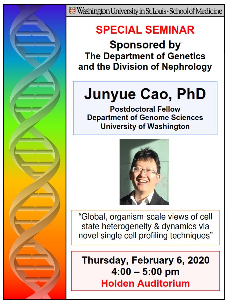 Join us for a special seminar on Thursday, February 6 at 4 PM! Speaker is Junyue Cao, Ph.D., from