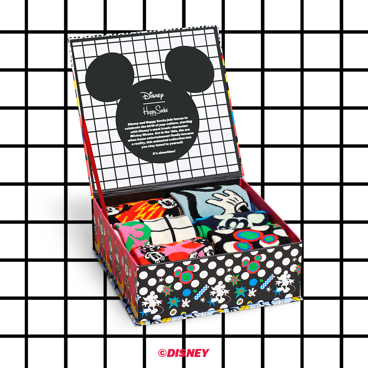 ディズニーとHappy Socksがタッグを組んで、ミッキーマウスのスペシャルコレクションが誕生! 子ども用・大人用サイズのソックスとギフトボックスを今すぐチェック。