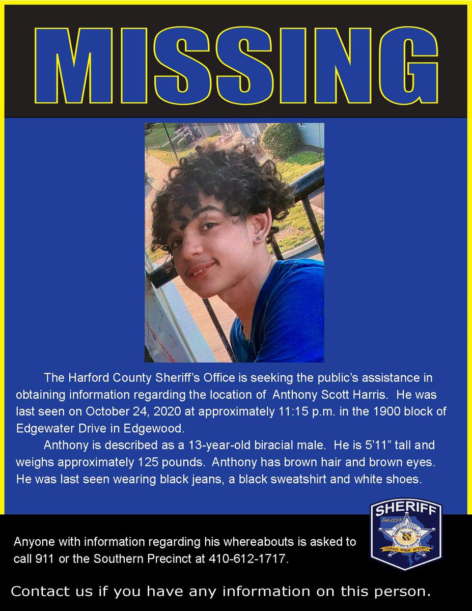 UPDATE: Thank you for your shares, Anthony returned home safe and unharmed.https://twitter.com/harford_sheriff/status/1320448404229640194 …