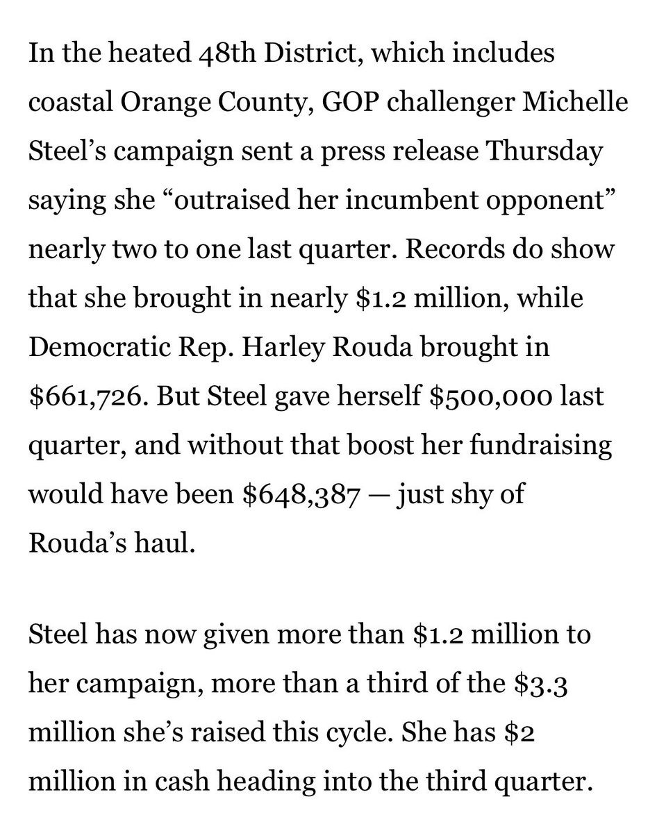@MichelleSteelCA MiChina Steal only put money into her campaign that was give to her and her corrupt, shady husband by the Chinese. That's what 'her own money' means. - Pokaż odpowiedzi