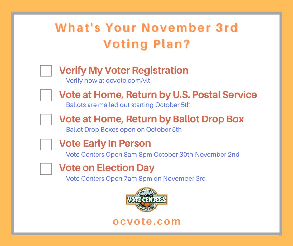 @OCRegistrar says the ballots won't be mailed to voters until October 5th. Because many are experiencing mail delivery delays already, sure wish that date was sooner! -