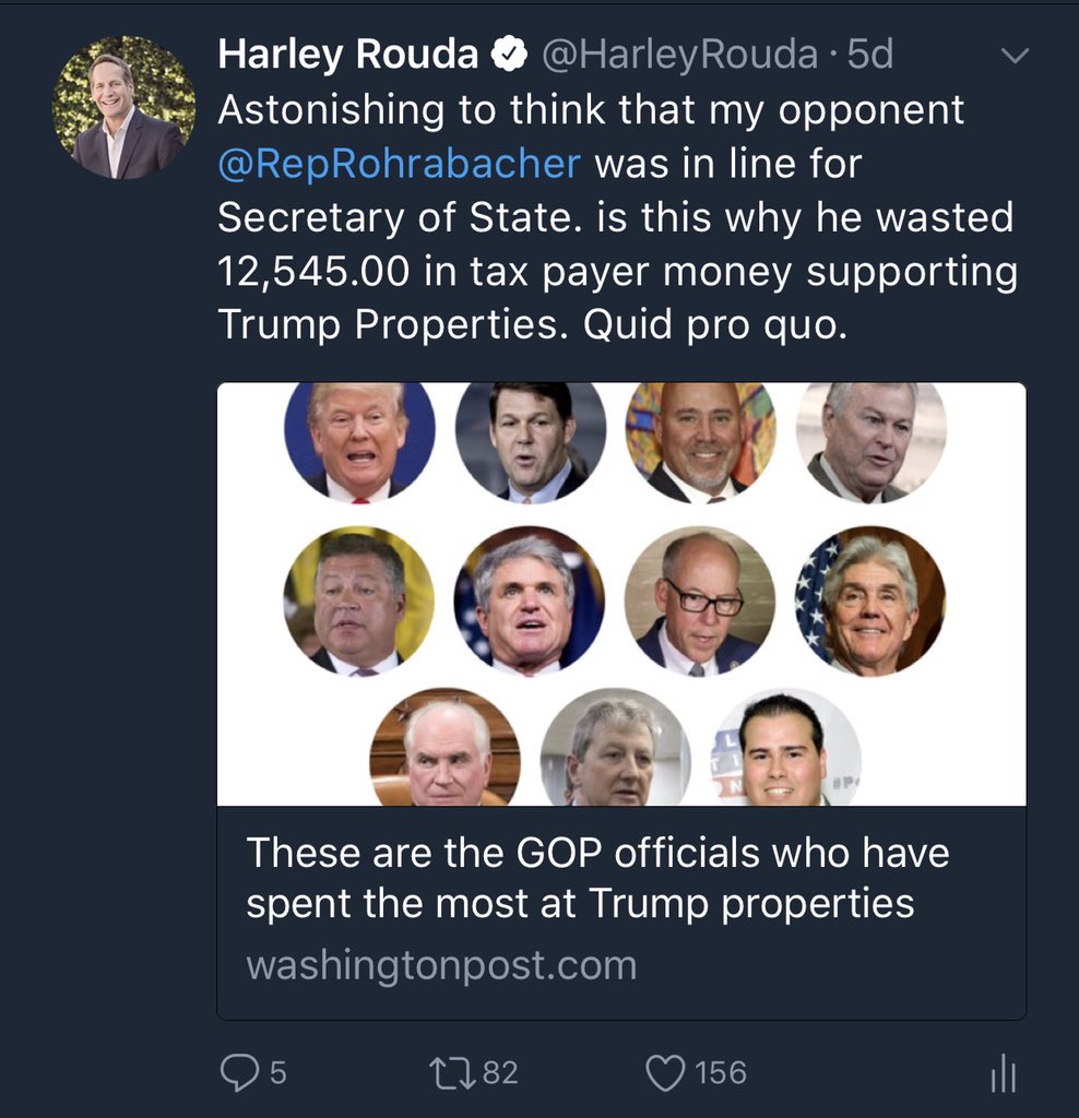 GOP Rep. Dana Rohrabacher, a big Trump supporter who has been trying to bend the president’s ear on WikiLeaks founder Julian Assange, has spent $12,545 at Trump International Hotel this yearhttp://www.latimes.com/politics/essential/la-pol-ca-essential-politics-updates-two-california-candidates-spent-big-at-1510947040-htmlstory.html …