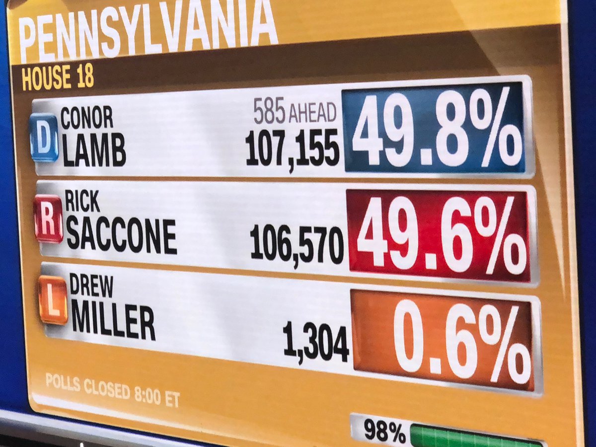 Conor Lamb May Only Be Up By 585 Votes . . But, This A District Trump Won By 20 Points !! And, With What Is Left . . . Lamb Wins !!