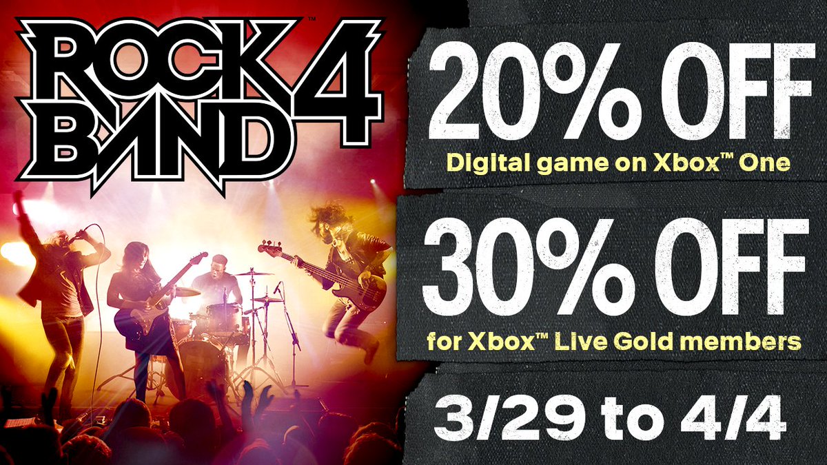 @RockBand 4 is 30% for@Xbox Gold members now through 4/4! https://store.xbox.com/en-US/Xbox-One/Games/Rock-Band-4/e7610f96-a7d8-41c1-8d3d-f1230d163af9 … pic.twitter.com/fbPejDoW79