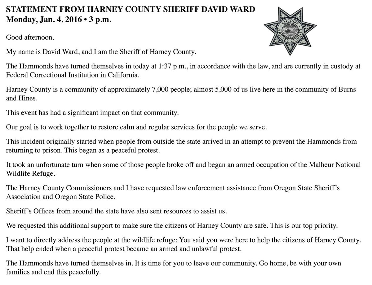 @HarneyCoSheriff I really don't envy you and the position that these "Patriots" have put you in. You seem to be doing a good job. -