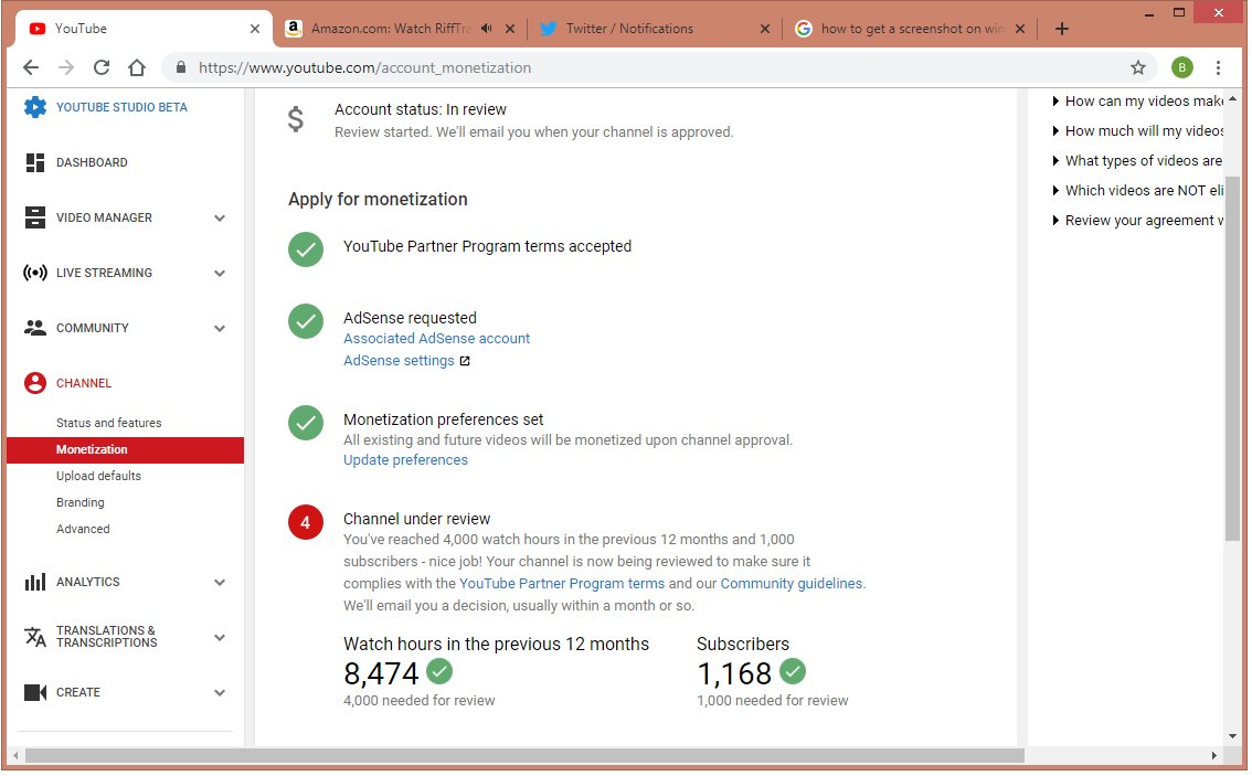 Thank you for getting back to me. Here's my monetization page.pic.twitter.com/HW2ba3Y3Ib