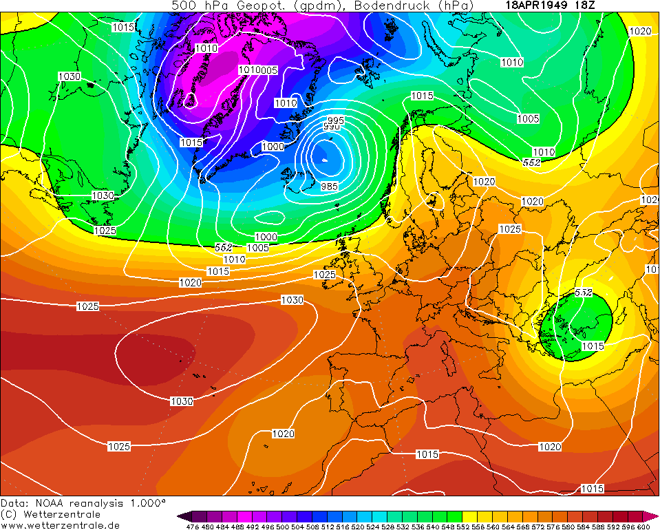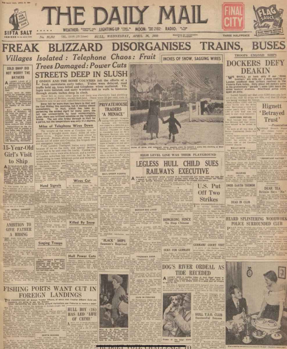 Beginning from the 24th April, 1950 blizzards swept across southern England. A southerly placed JS drawing arctic air south over Western Europe but moving north over Eastern Europe, taking tropical air towards Moscow and the highs of +28°C and just to the north +30°C! Balmy! https://twitter.com/Harry_Hardrada/status/1383757240977395712 …pic.twitter.com/MZtvSOtHut