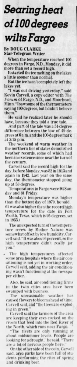 Parts of North Dakota and the Upper Midwest were up to +100F (+38.0°C) on the 21st April, 1980... this actually happened!
