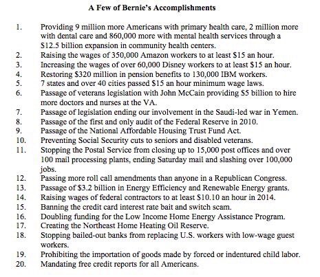 Actually, all those bills were all passed while Bernie was in the Senate. He’s been in the Senate for only 12 years, passing 220 bills, which gives gives him an average of 18.3 bills per year :)