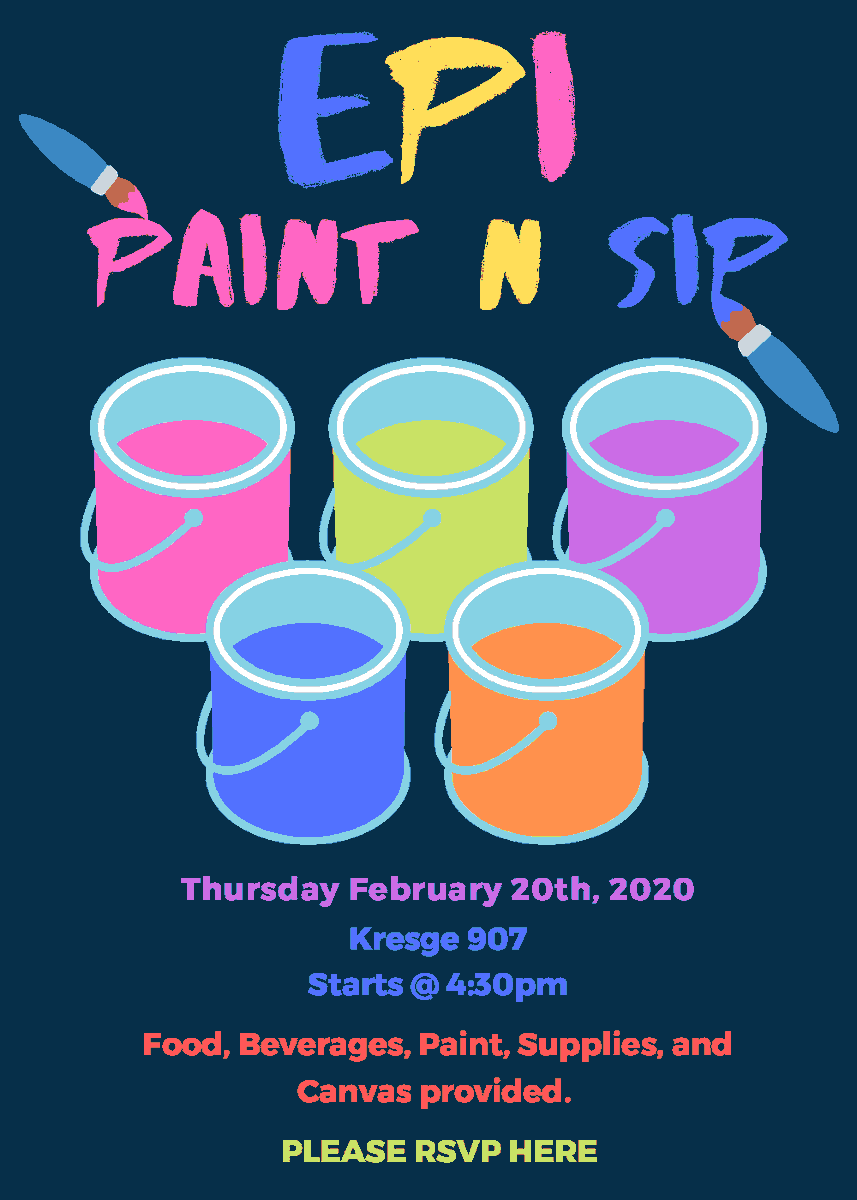 Reminder to RSVP to Epi Paint & Sip! Event takes place Thursday February 20th at 4:30 p.m. in Kresge 907! Food, beverages, paint, supplies, and canvas are provided. RSVP link closes on February 19th! Do not miss out! RSVP Link: http://ow.ly/yUPa50xXnE0